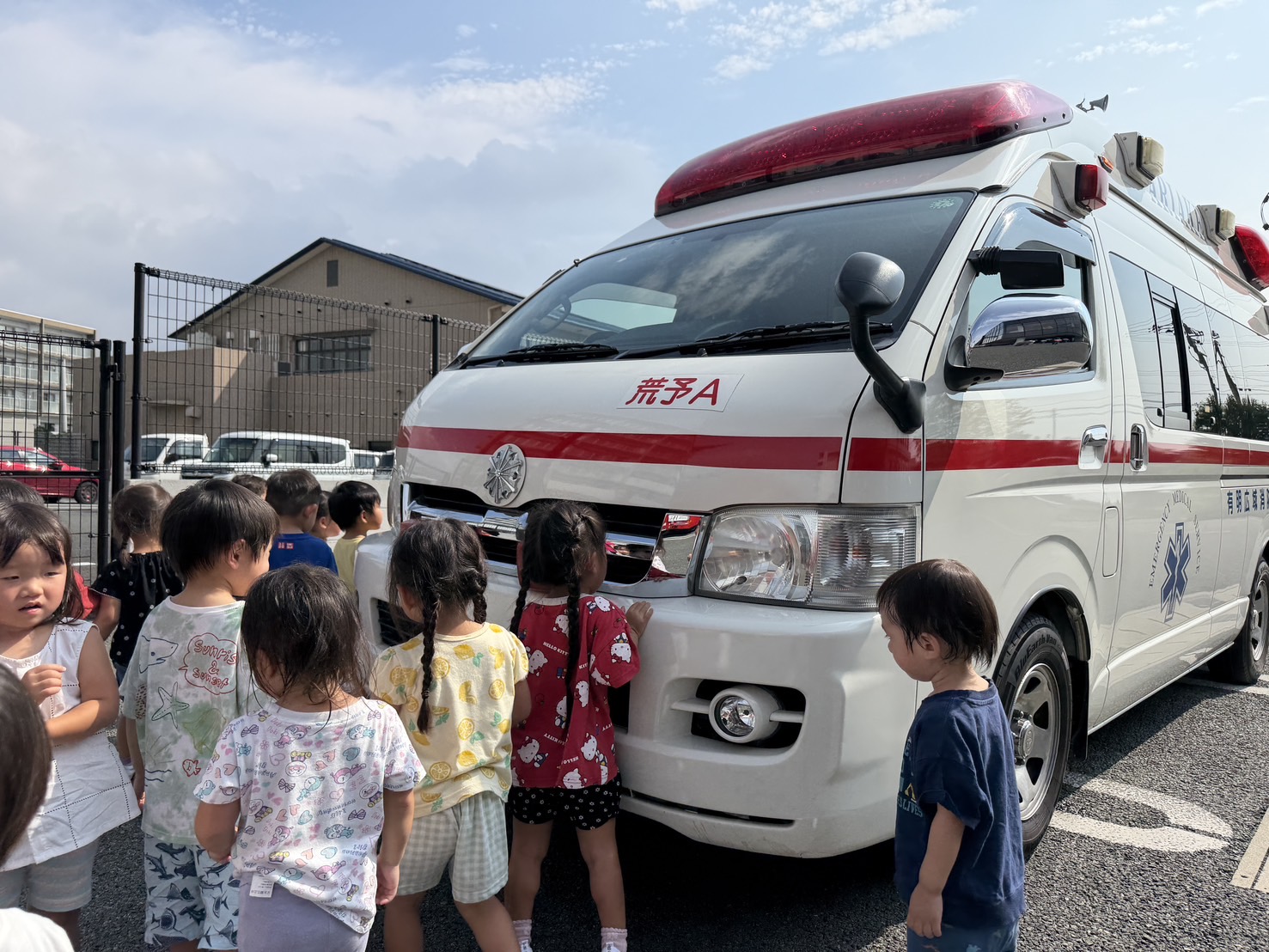 今日の災害避難訓練は消防士さん立ち会いの元行われました🧑🚒みんなしっかりお話しも聞けましたね!