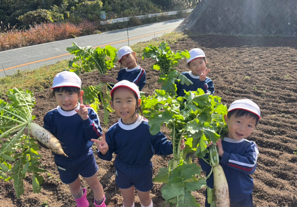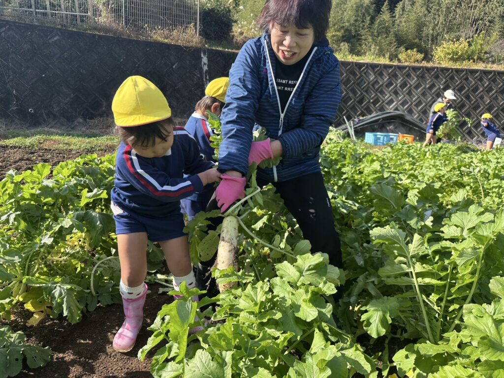「大きい!」「ヨイショ!」と力っぱい大根引きを頑張りましたよ😊