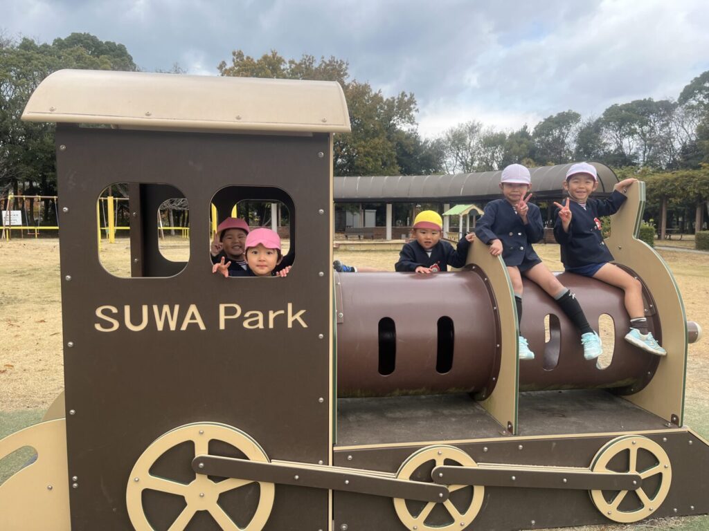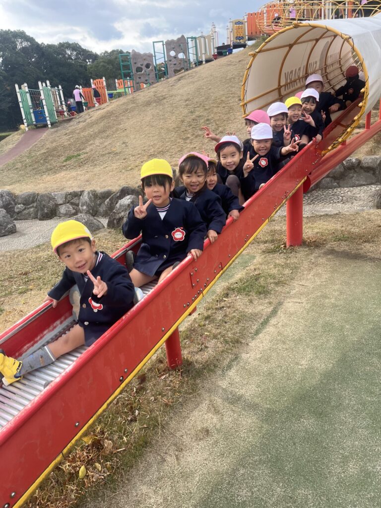 長い滑り台や大きなアスレチック、落ち葉で遊んだりと思いっきり楽しみました😁