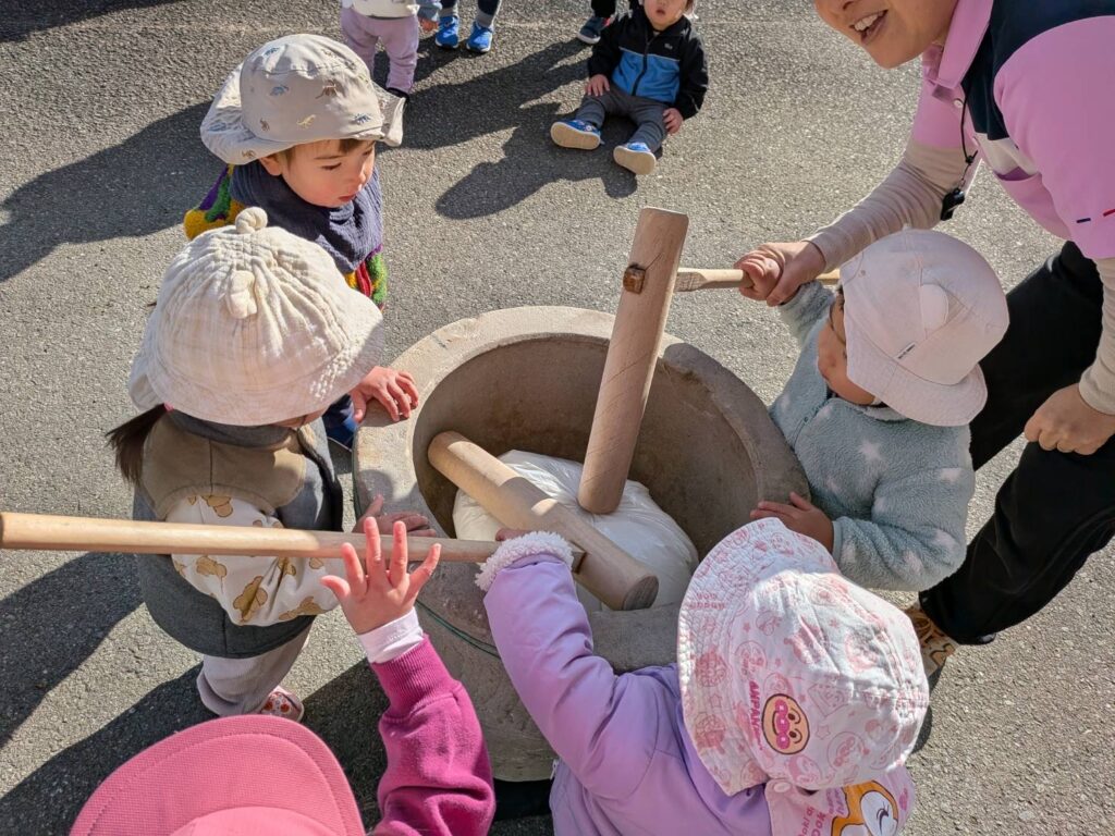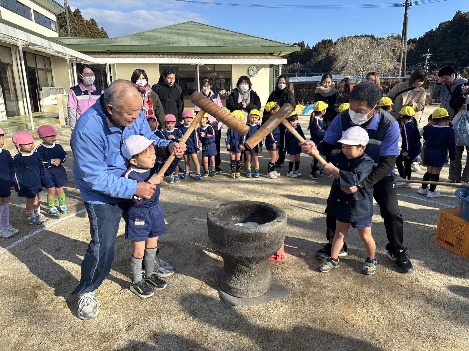 また、石臼や杵を使って「餅つきの模擬体験」をしたり、もぐら打ちも体験して、盛りだくさんの1日でした😄