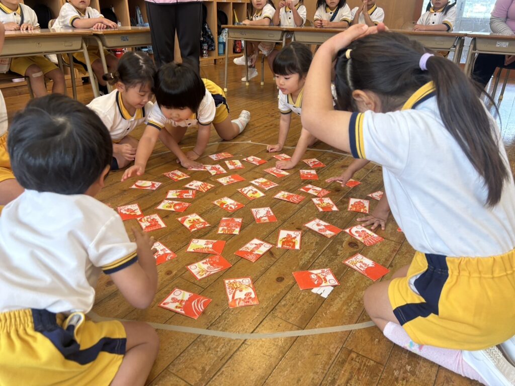 菊組さんはお正月にちなんで、それぞれで言葉を考えてカルタを作りました(^^)