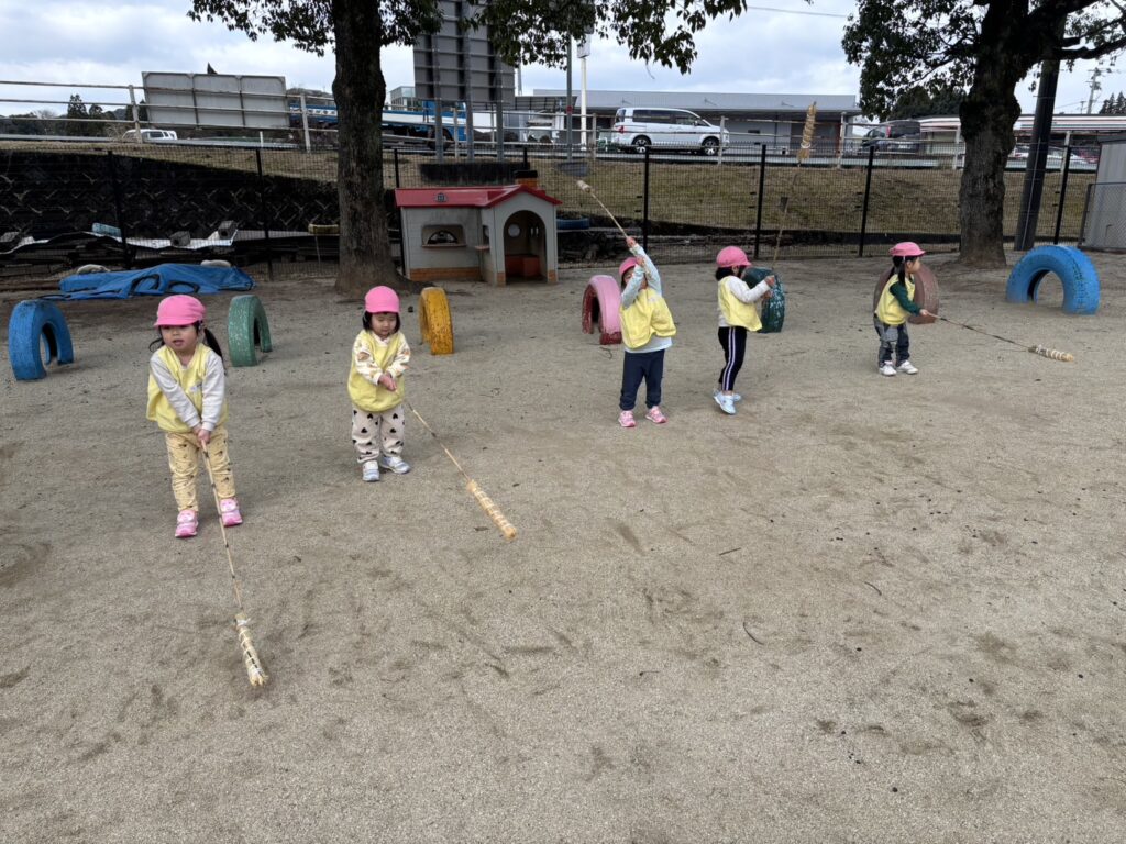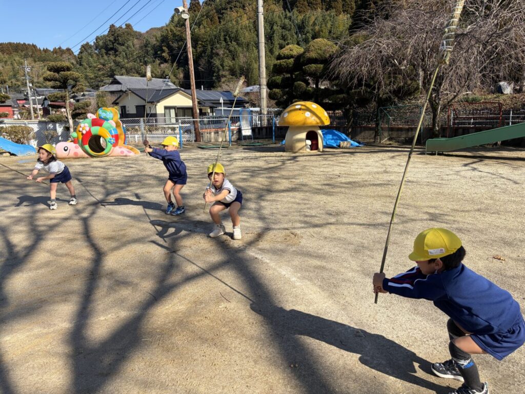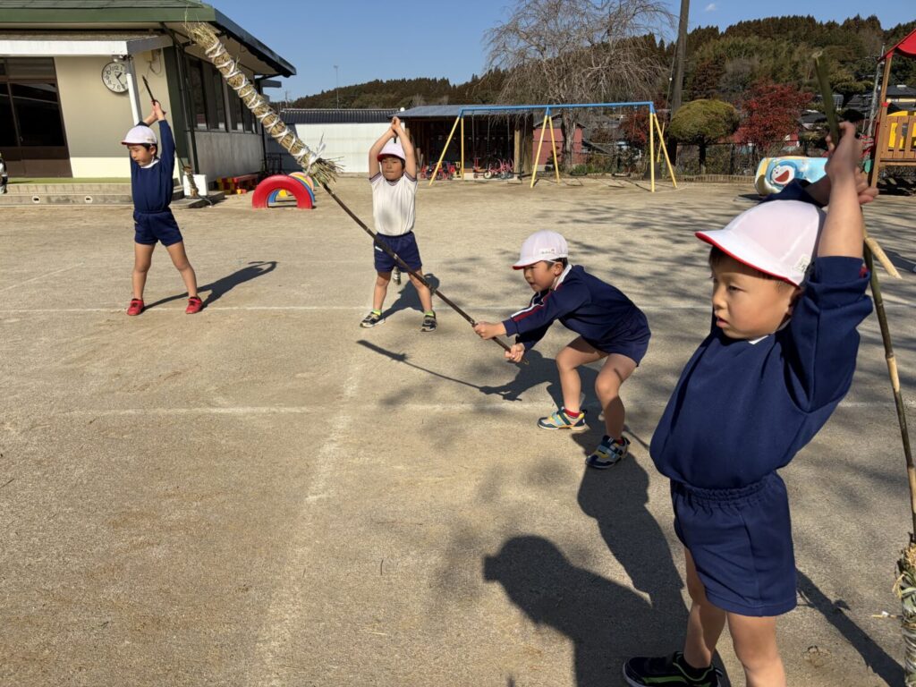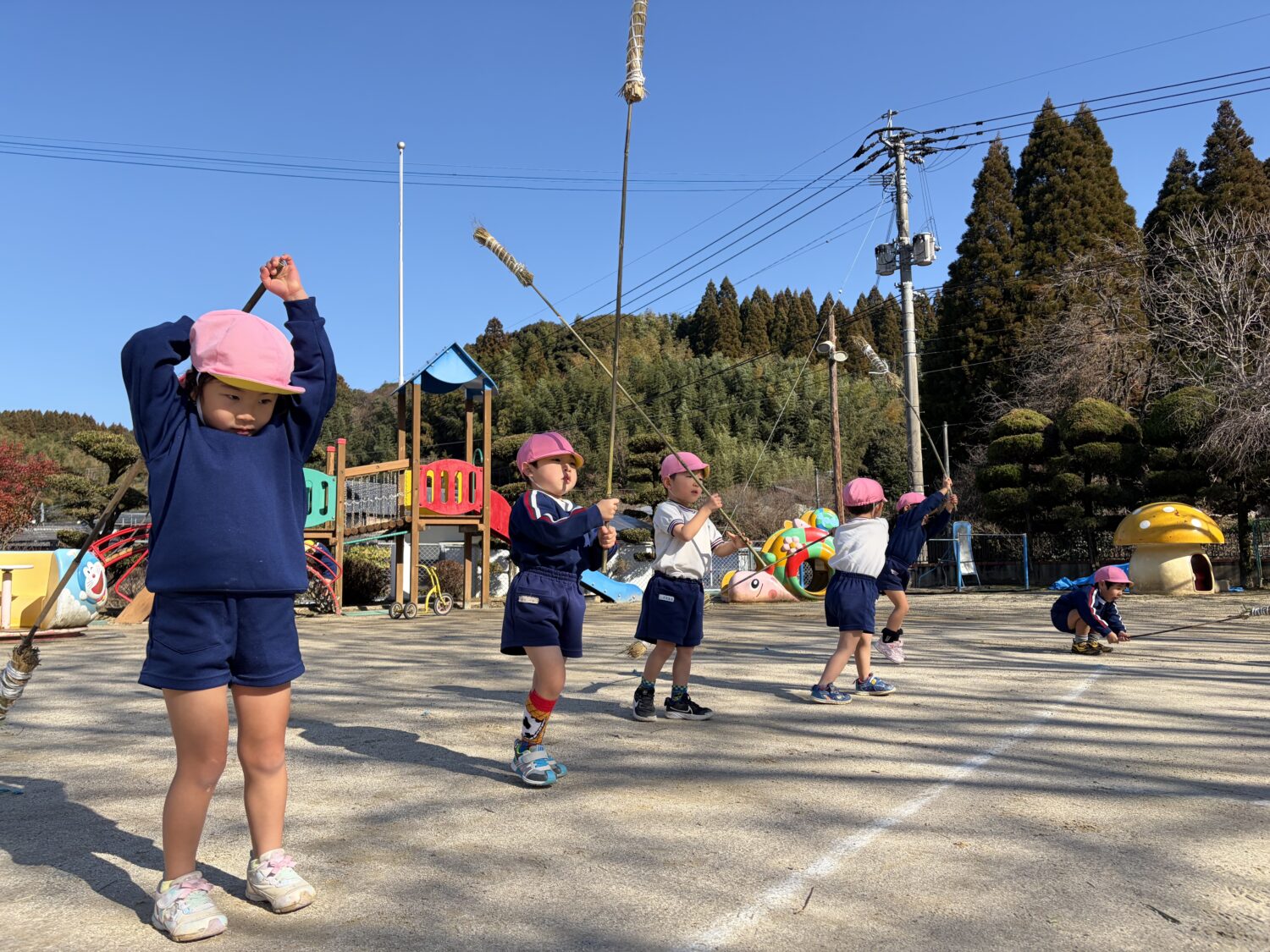 明日のもぐら打ちに向けて菊組さんが準備をしてくれましたよ!一生懸命作る姿にりす組さんもじーっと真剣な表情で見学しました(^o^)明日が楽しみですね✨️