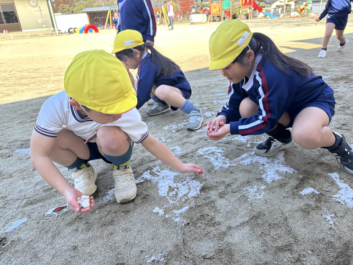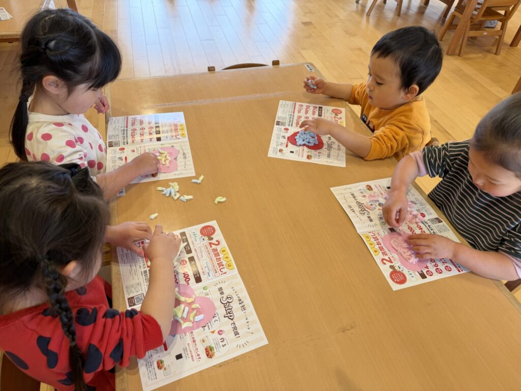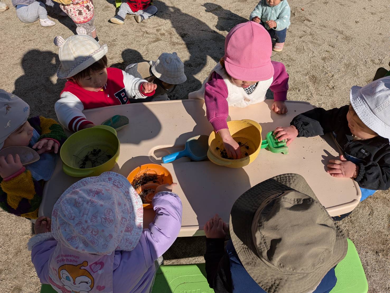 明日のもぐら打ちに向けて菊組さんが準備をしてくれましたよ!一生懸命作る姿にりす組さんもじーっと真剣な表情で見学しました(^o^)明日が楽しみですね✨️