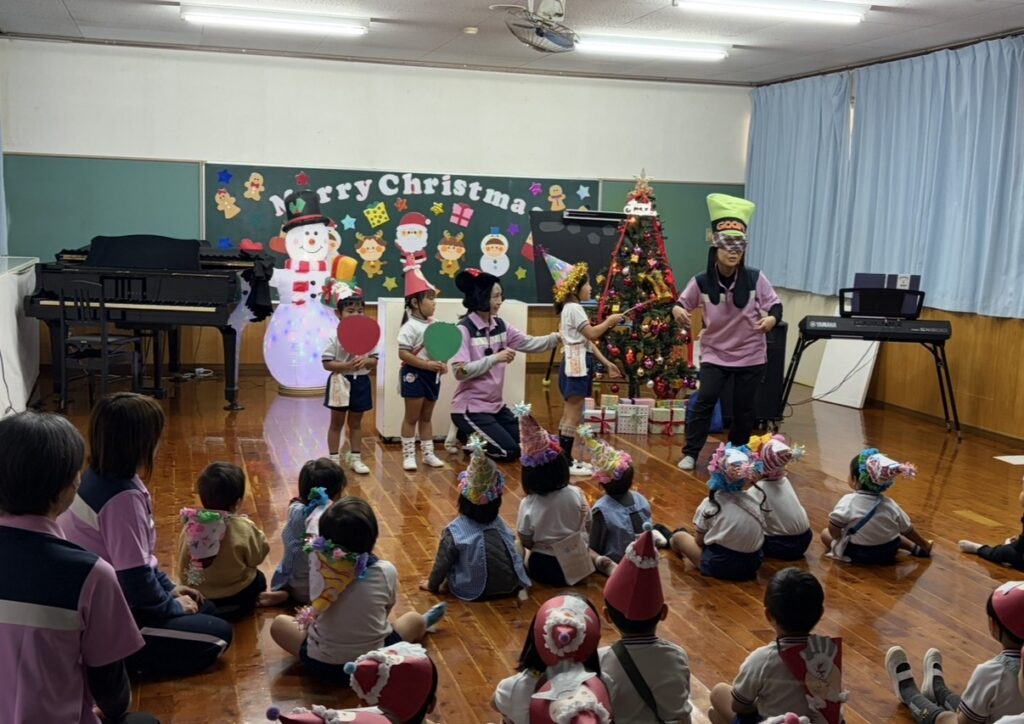 今日は、みんなが楽しみにしていたクリスマス会でした🎄🎅先生たちの出し物のハンドベルやマジックショー、ダンスなど大盛りあがりでした!サンタさんがプレゼントを持ってきてくれましたよ🥰 さぁ、みんなのところにも来てくれるかなぁ💭また明日聞かせてね♩