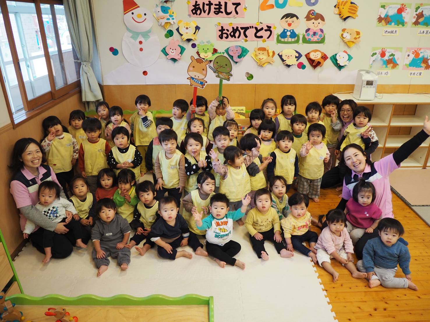 以上児さんはお正月の遊びをみんなで楽しだり、先生達のお手玉でも盛り上がりましたね😊