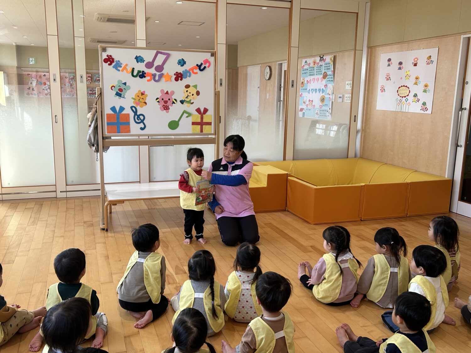 ようやく、冬といった気温になってきましたね!今日は誕生会があり、皆が口にしやすい手遊びのパネルシアターなどでお祝いしました🎂おめでとうございます!!