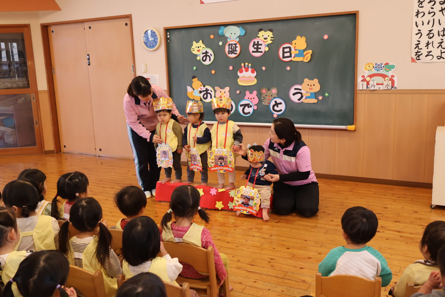 待ちに待ったお誕生会の日✨️堂々と前に並んでみーんなにお祝いしてもらいましたよ!