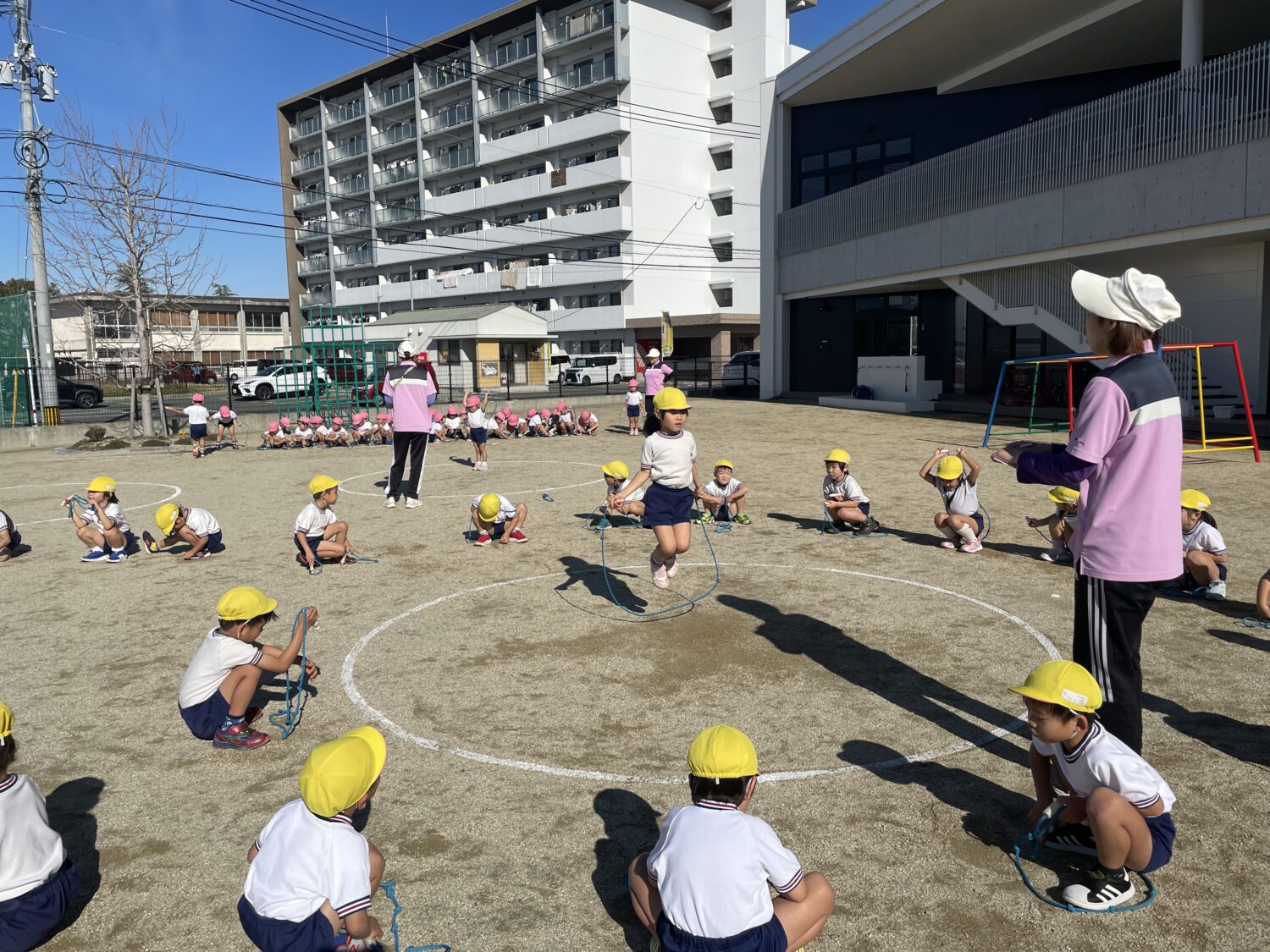 暖かい春の日差しの下、今日は縄跳び大会がありました!