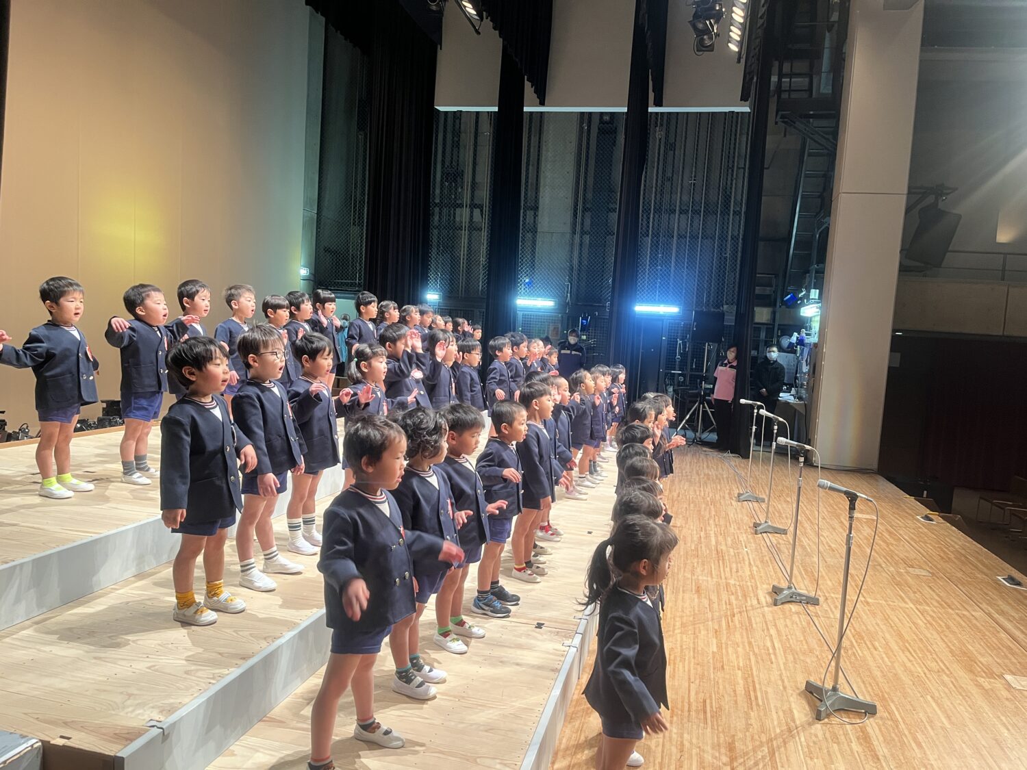 ホールで歌の練習を頑張る桃組さんと藤組さん!
