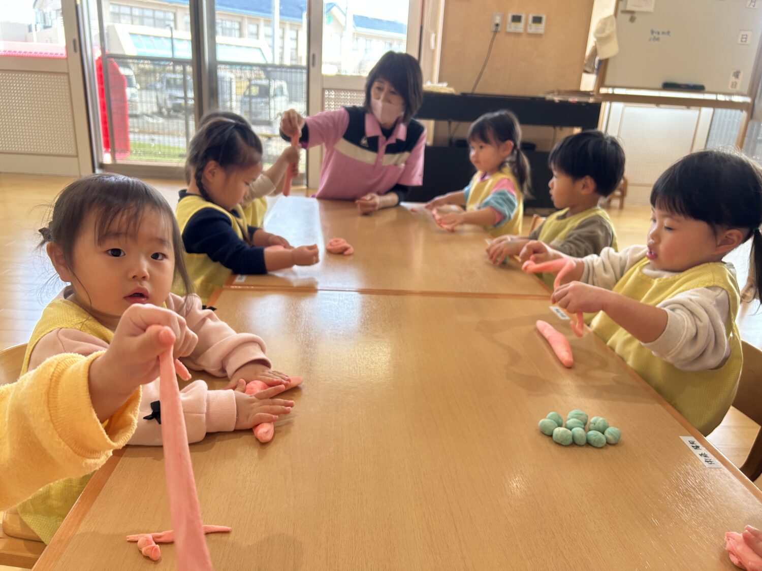 製作がだ〜い好きなひよこ組さん✏️何をするのかな?!とわくわくな表情が可愛らしいです!