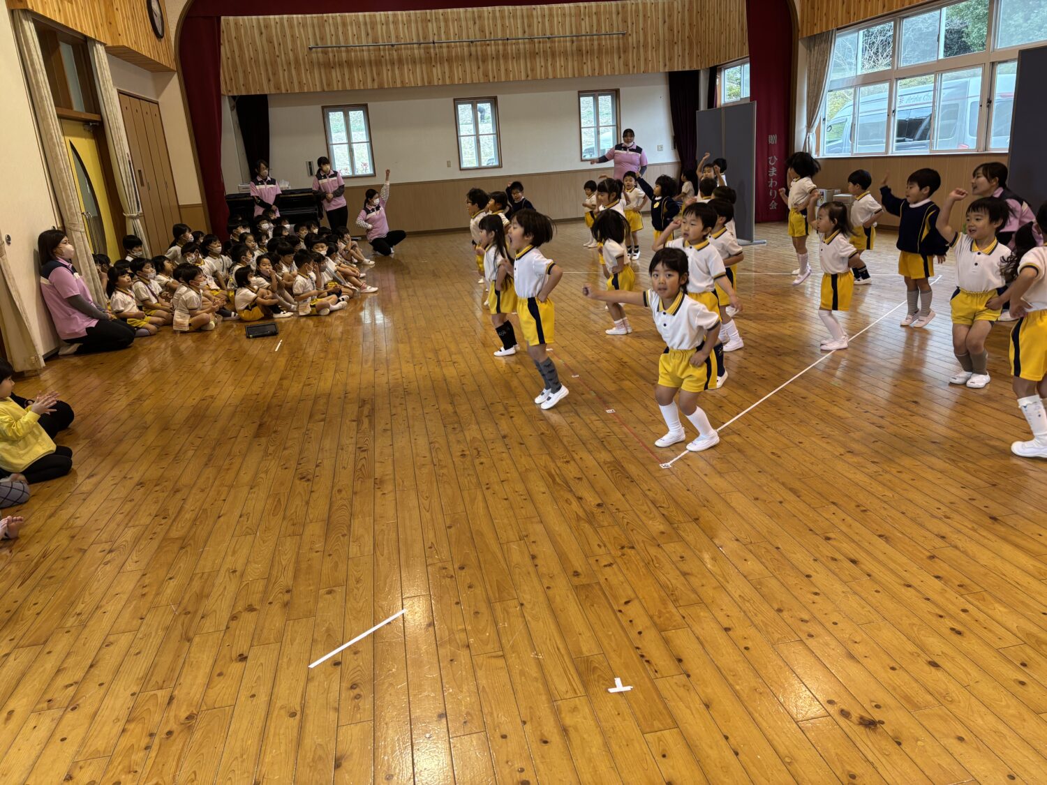 それから各教室に分かれてパターンや歌など日頃の園での様子を見てもらいました。お父さん、お母さんに頑張ってる姿を見てもらって、とても嬉しそうな子どもたちでした♡