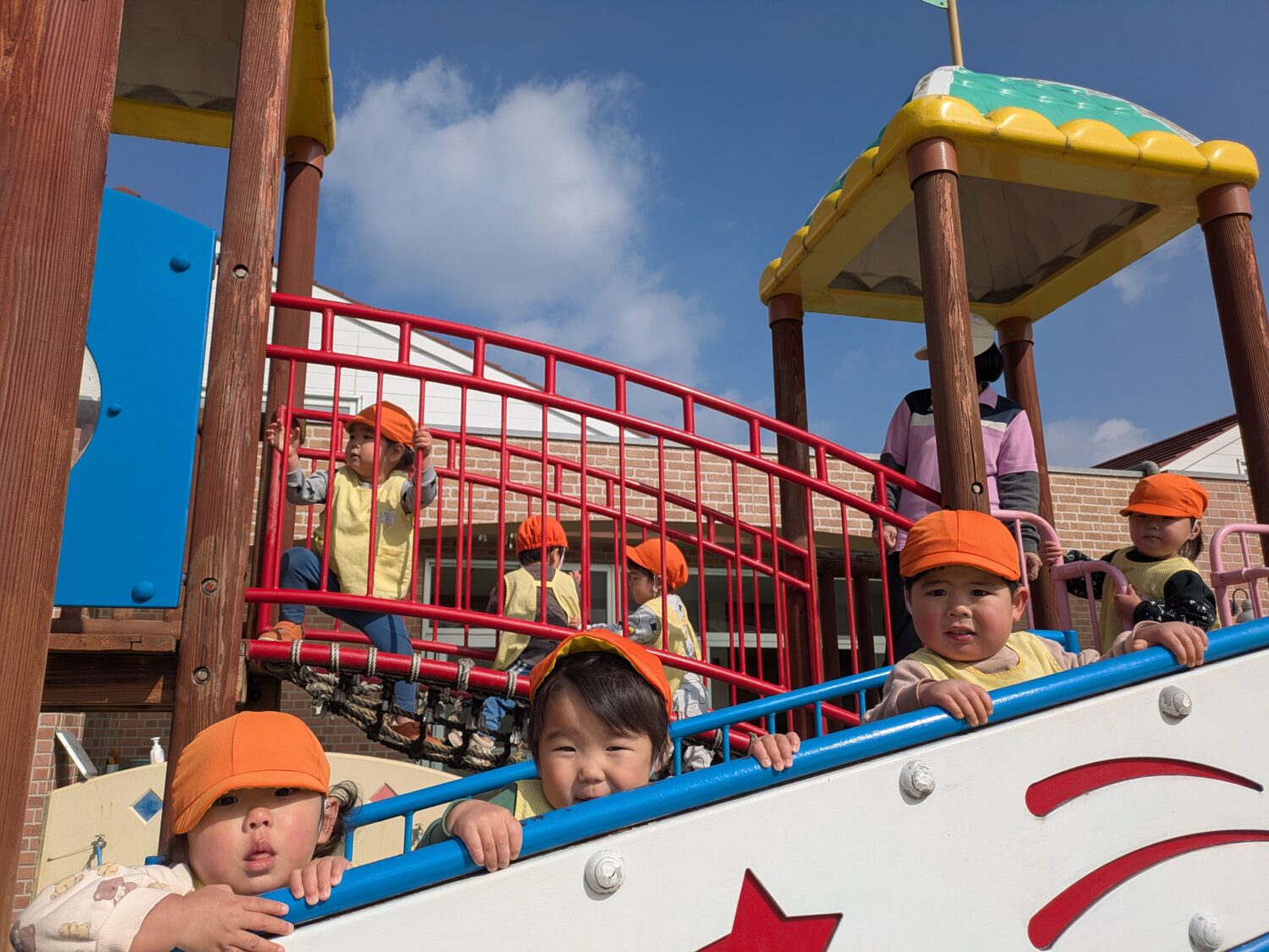 つくし組さんは外遊びで最近のお気に入りは滑り台です☺️一人で滑れるようになり、順番で待つことも少しずつ覚えてきています❗