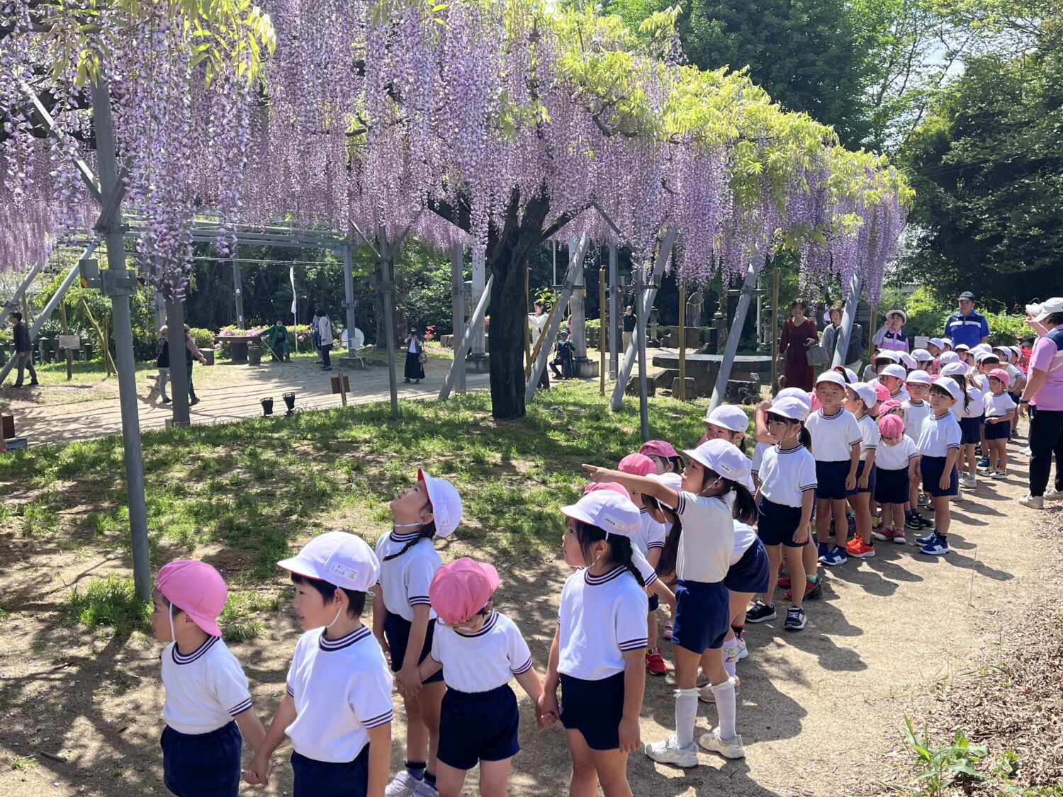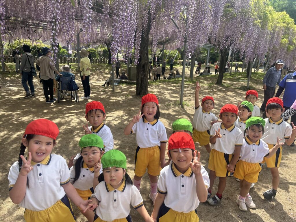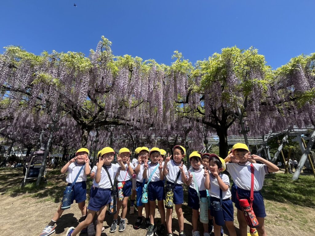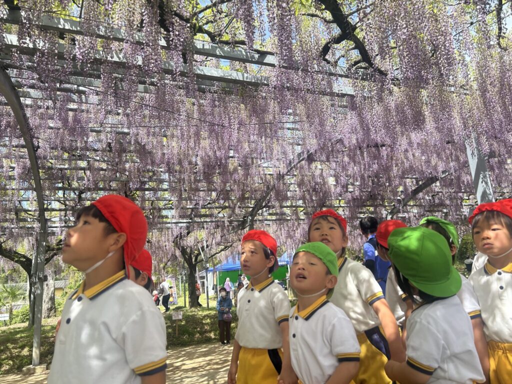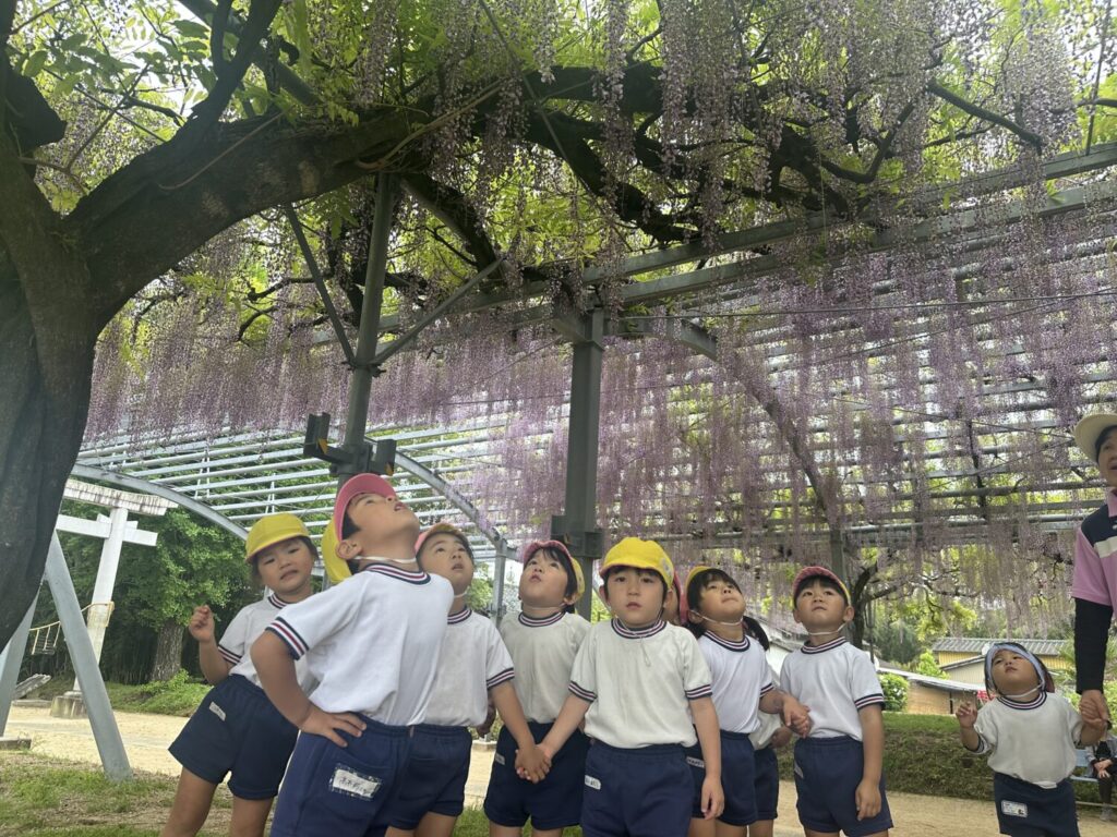 子ども達は藤の花がどのように咲いているのか