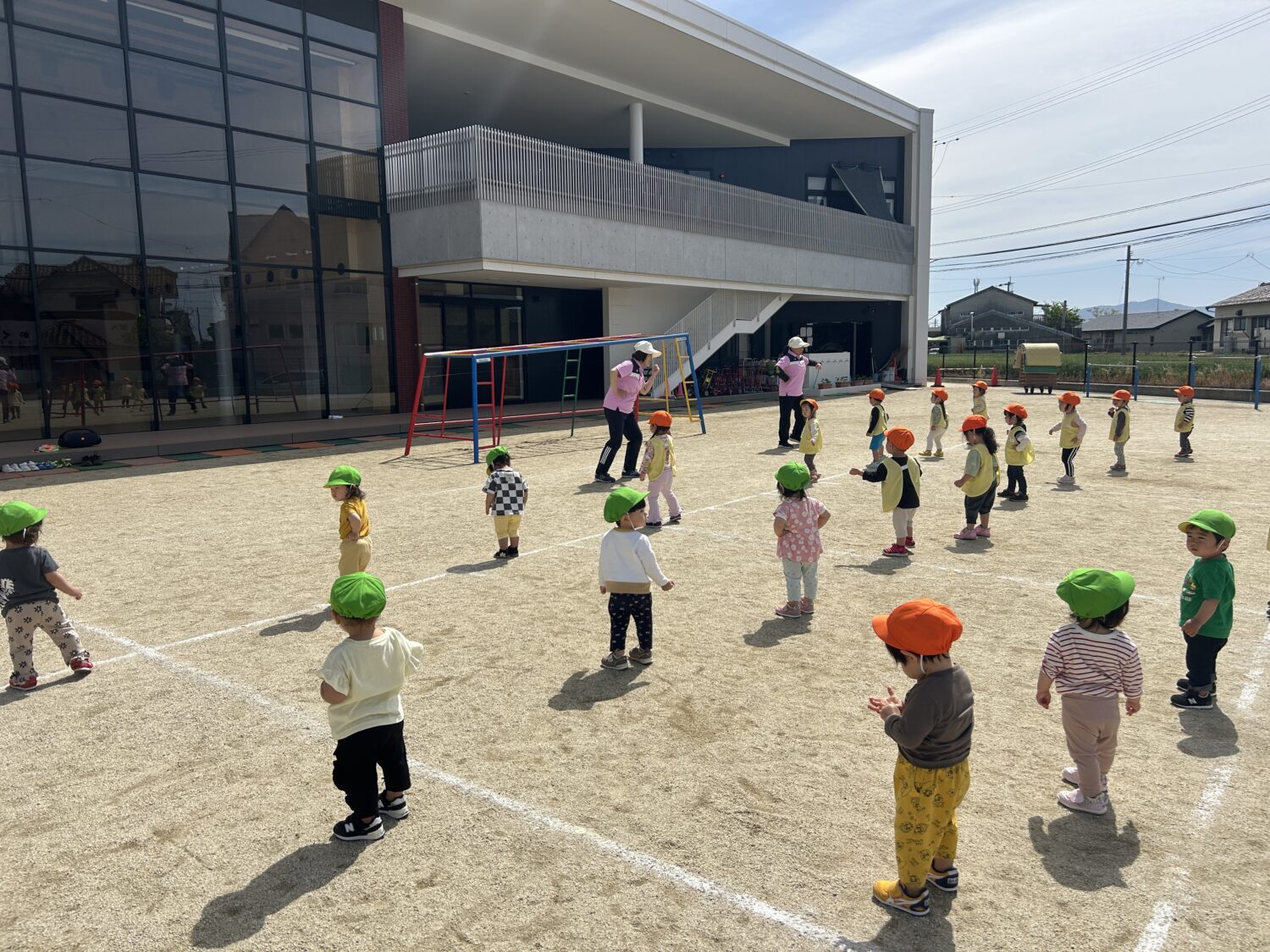 チーム対抗ゲームや、園舎の色んなところに