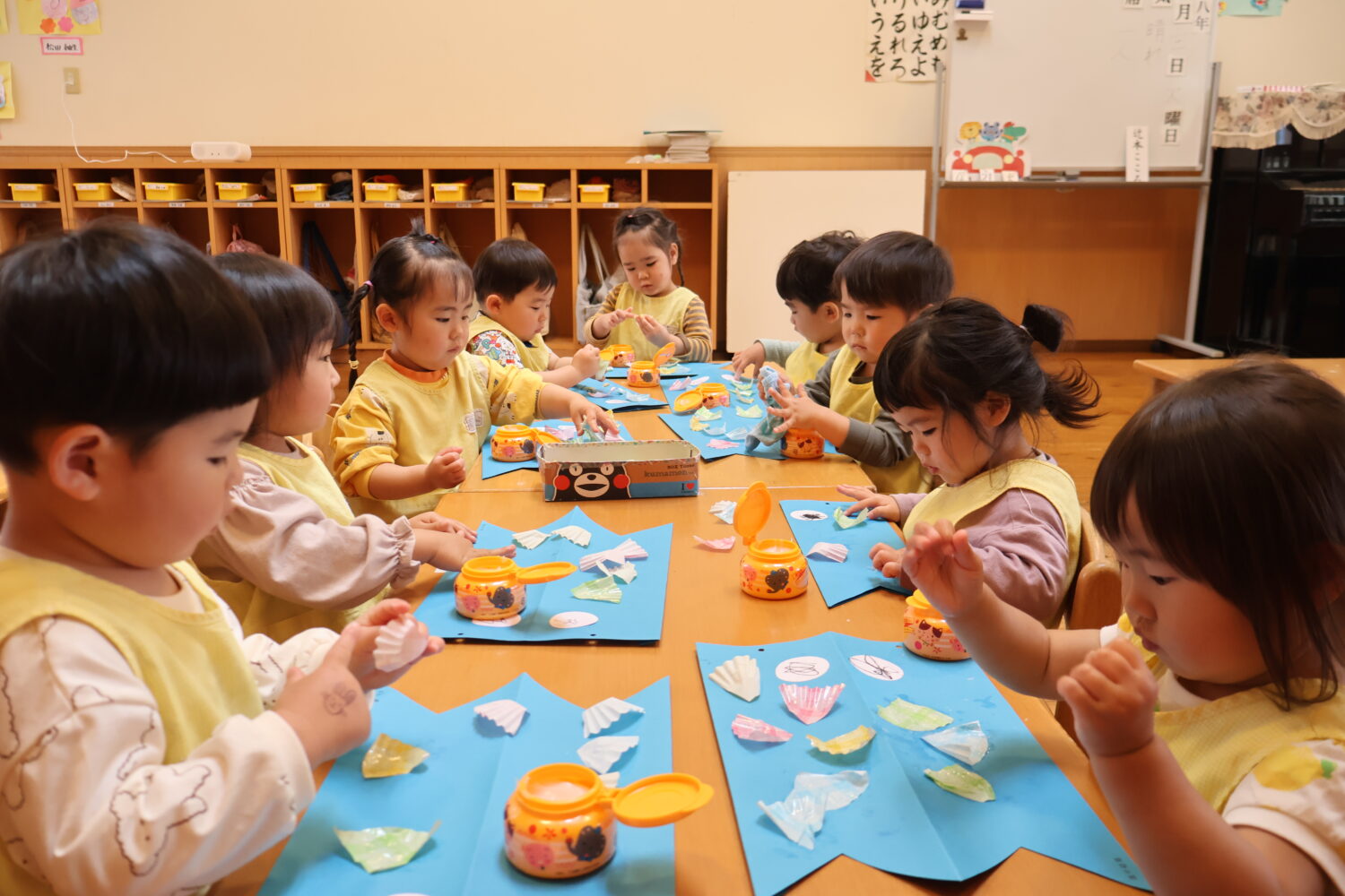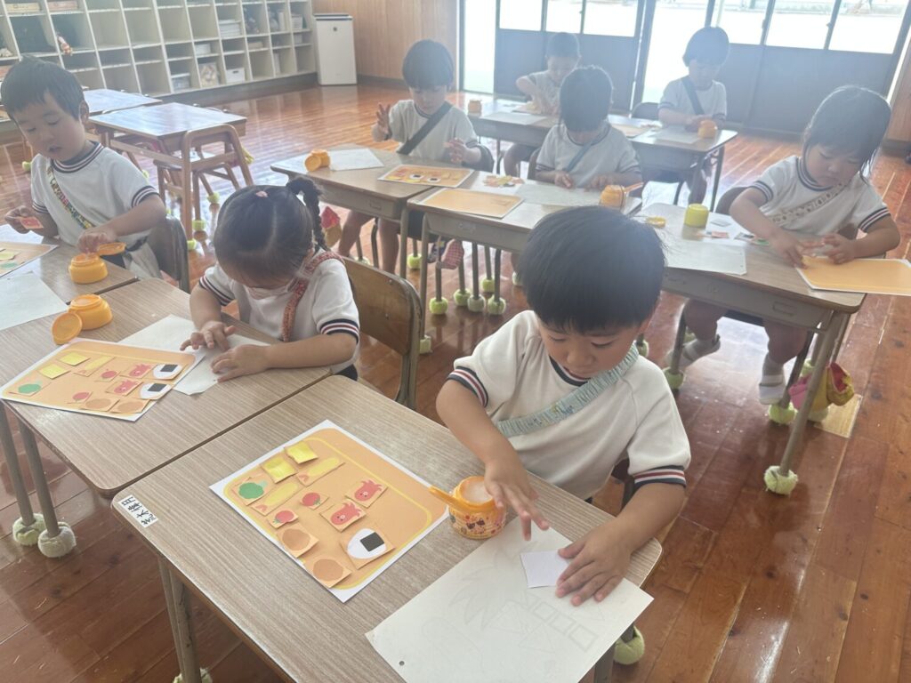 あやめ組さんは初めての糊の感触に不思議そう!伸ばしたりトントンしたり楽しかったね😊