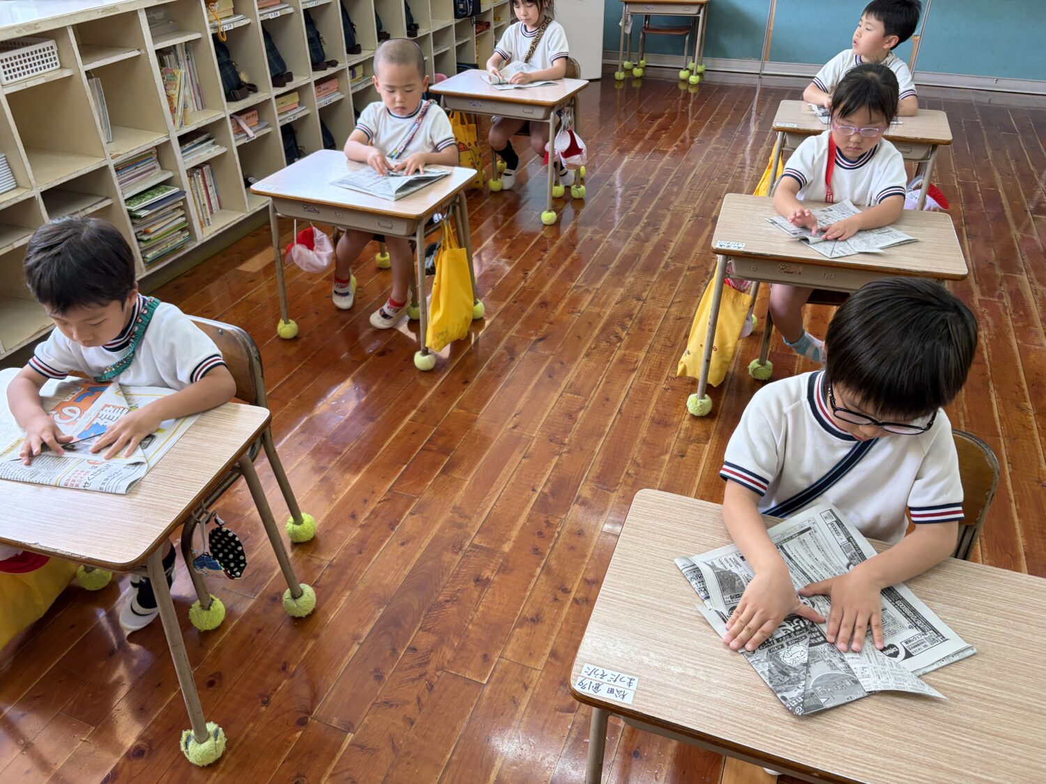 ハサミの練習を頑張った後は、新聞紙ゲームをして楽しんだ子どもたちです♩