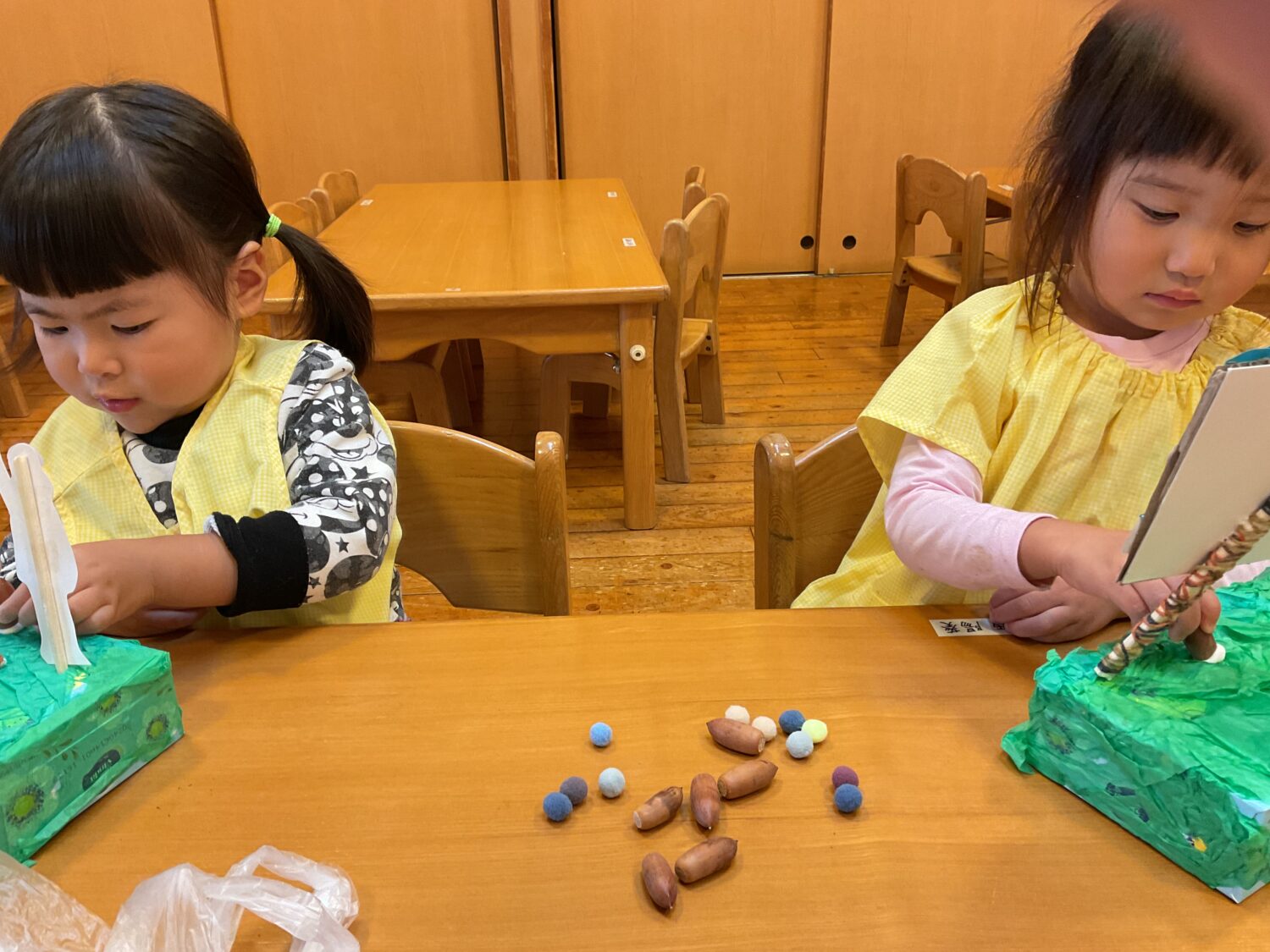 うさぎ組さんでは、どんぐりを使用し秋に触れながら楽しく製作しています🍂