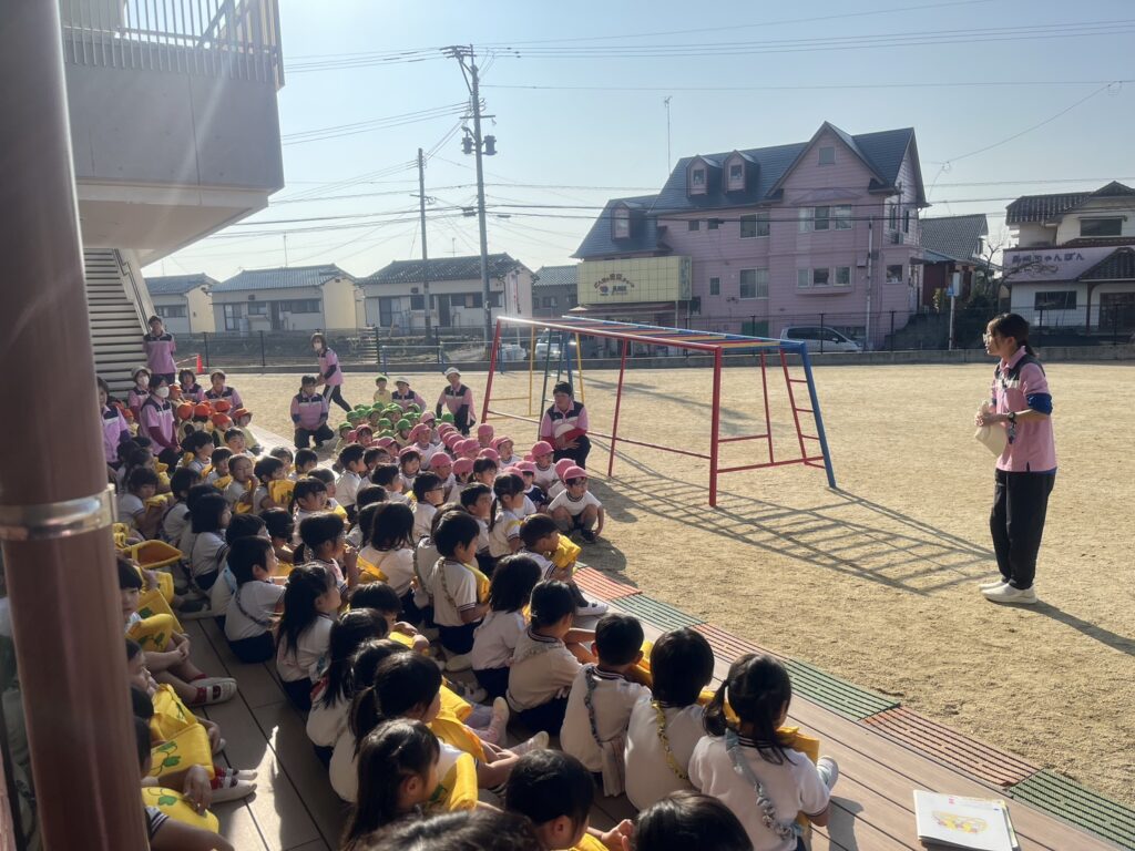 地震の後の火災を想定して災害避難訓練がありました😃地震も頻繁に発生し、火災もこれからが増えるのでお家でも話し合ってみてくださいね😊