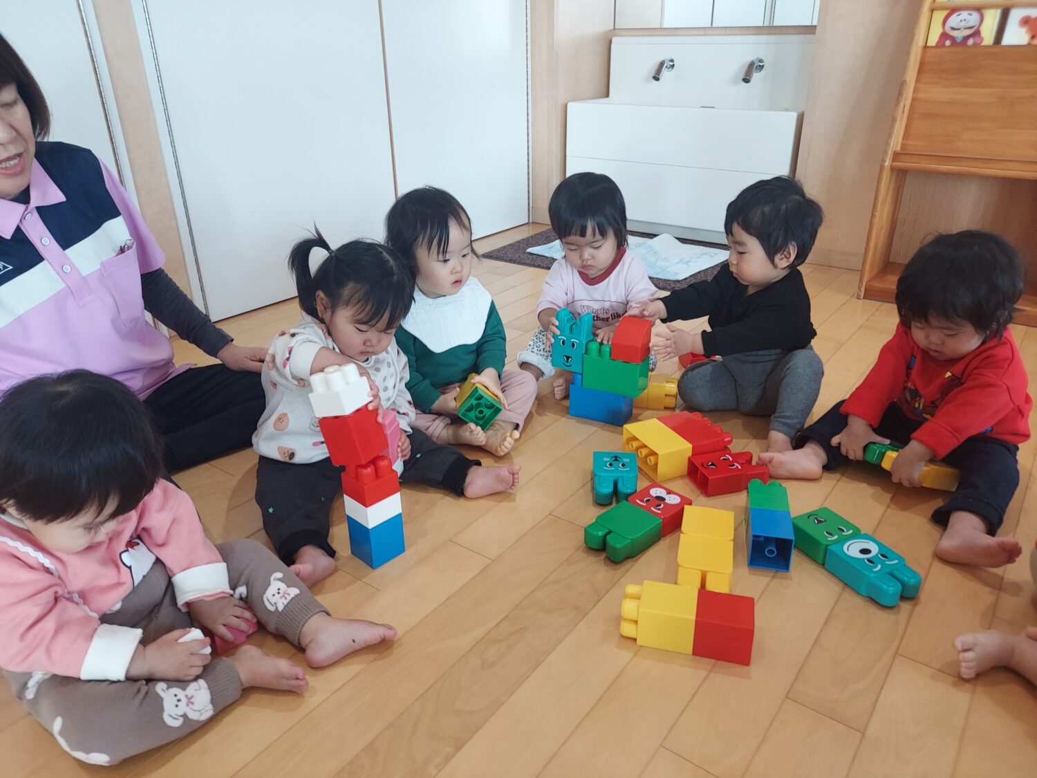 ブロックを積み重なることが出来るようになったつくし組さん。高く積んでいく「うわぁ!」と大喜びしてました🎵