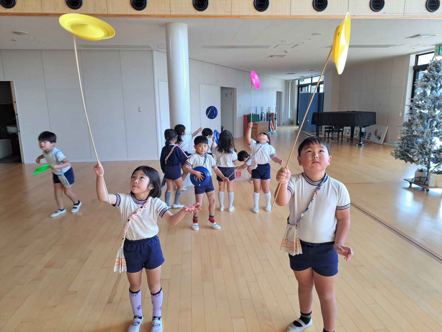 シャンシャン、ルンルン♪未満児さんは、クリスマス発表会に向けて✨️楽しく練習中!!はい✋️と手を挙げる姿にかっこよさを感じています🍀