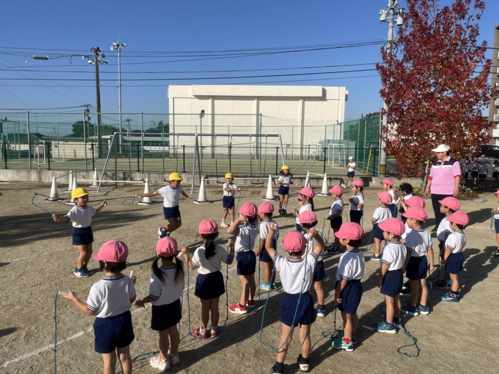 マラソン大会を終え、桃組さんは縄跳びに夢中です!