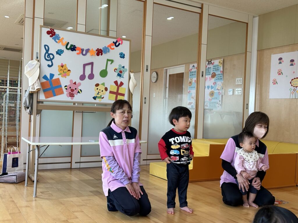 今日は12月のお誕生会でした!みんなの前でお名前も上手に言えました✨✨先生の出し物で盛り上がったね♬