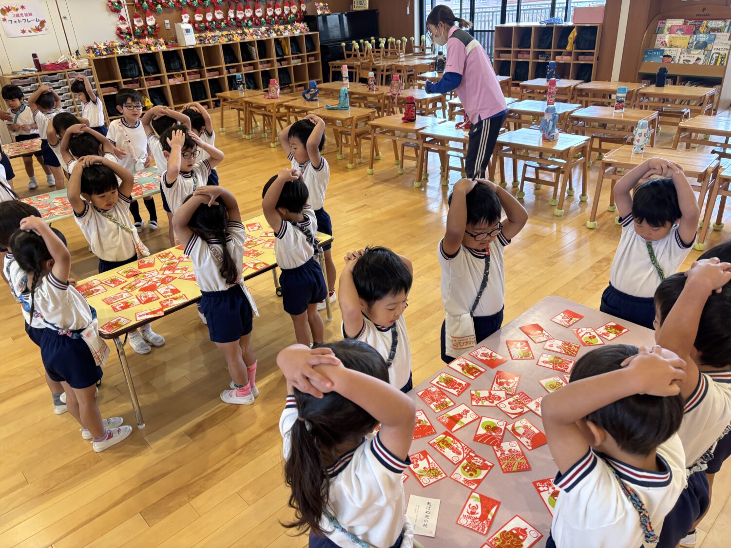 諺カルタを頑張っている桃組さん
