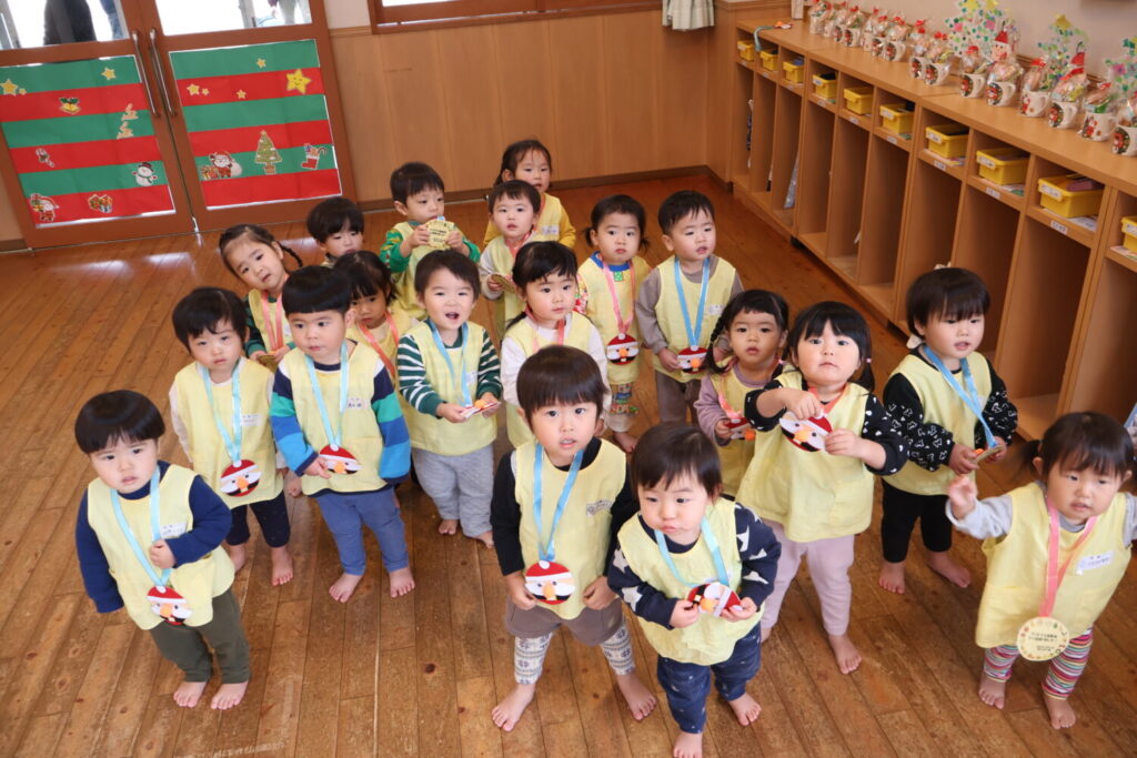 ようやく、冬といった気温になってきましたね!今日は誕生会があり、皆が口にしやすい手遊びのパネルシアターなどでお祝いしました🎂おめでとうございます!!