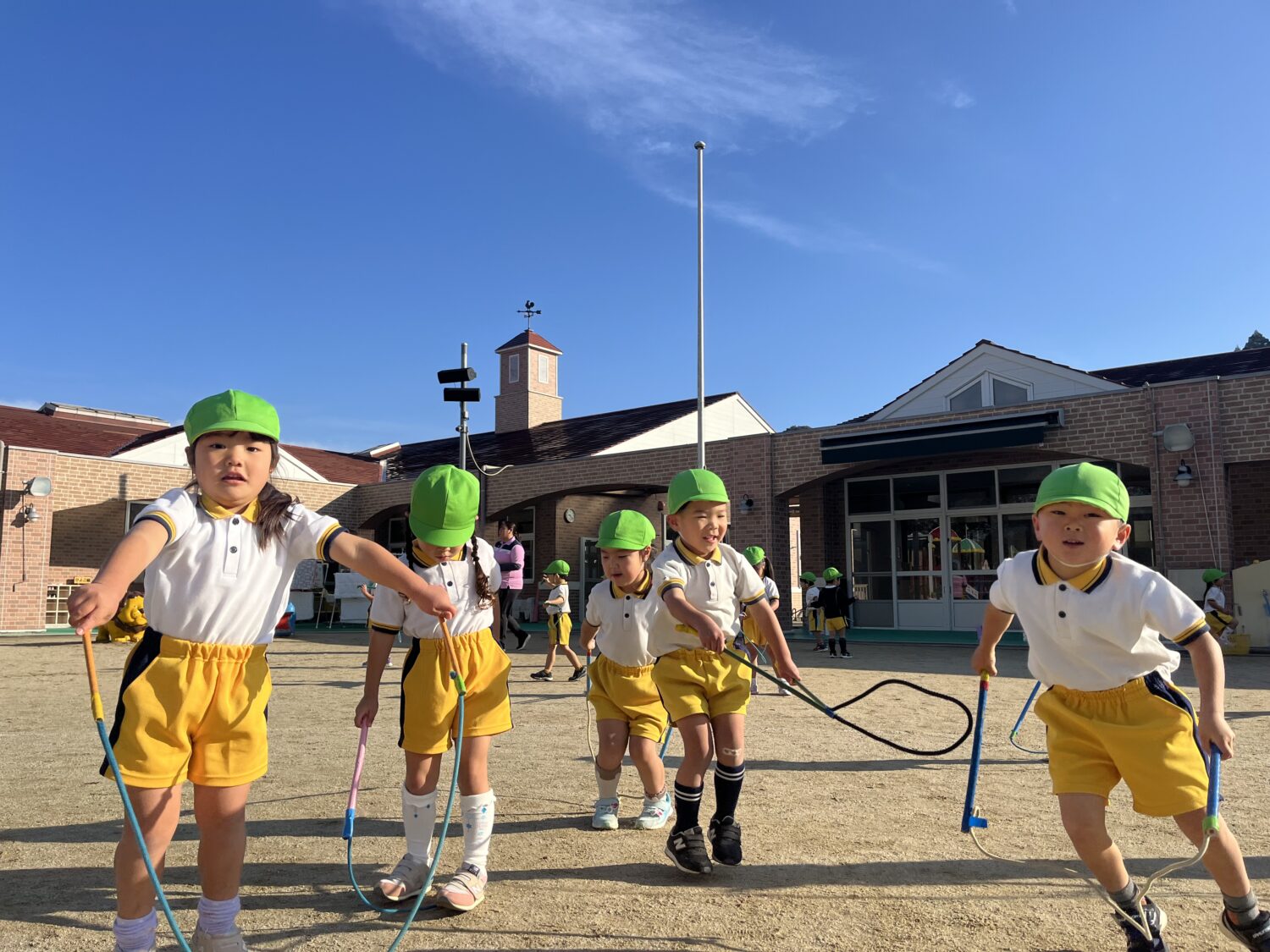 マラソン大会を終え、桃組さんは縄跳びに夢中です!