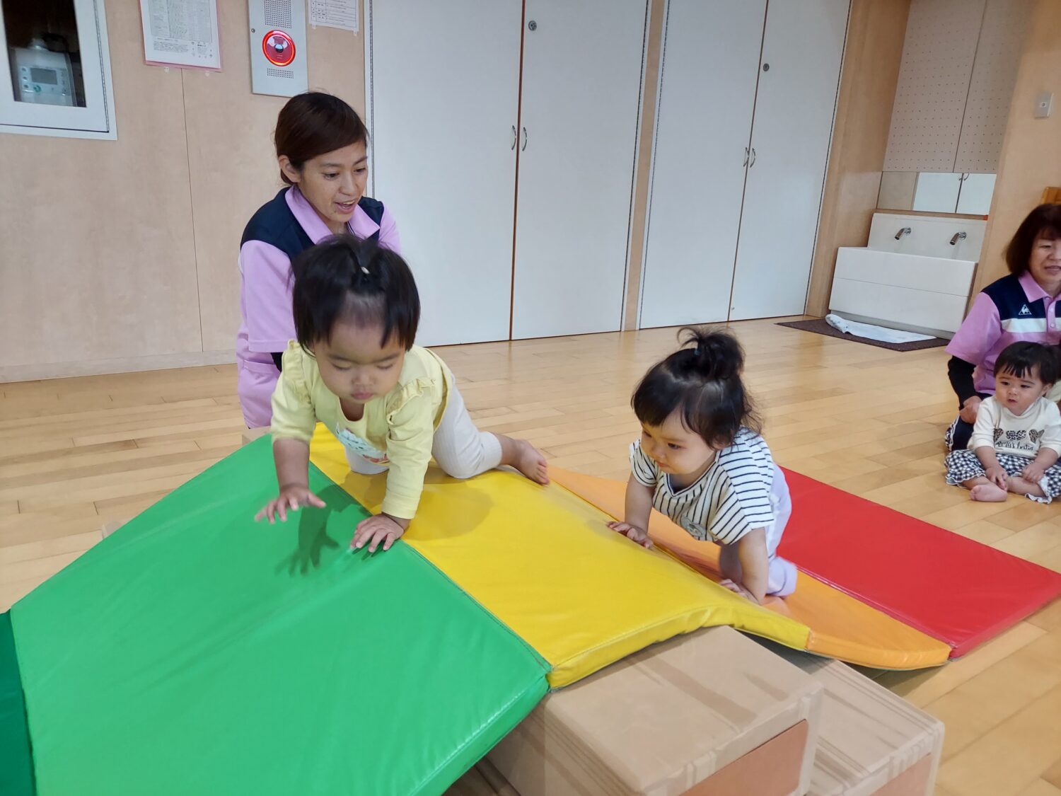 マットのお山を身体いっぱい使い頑張って登りました🎵