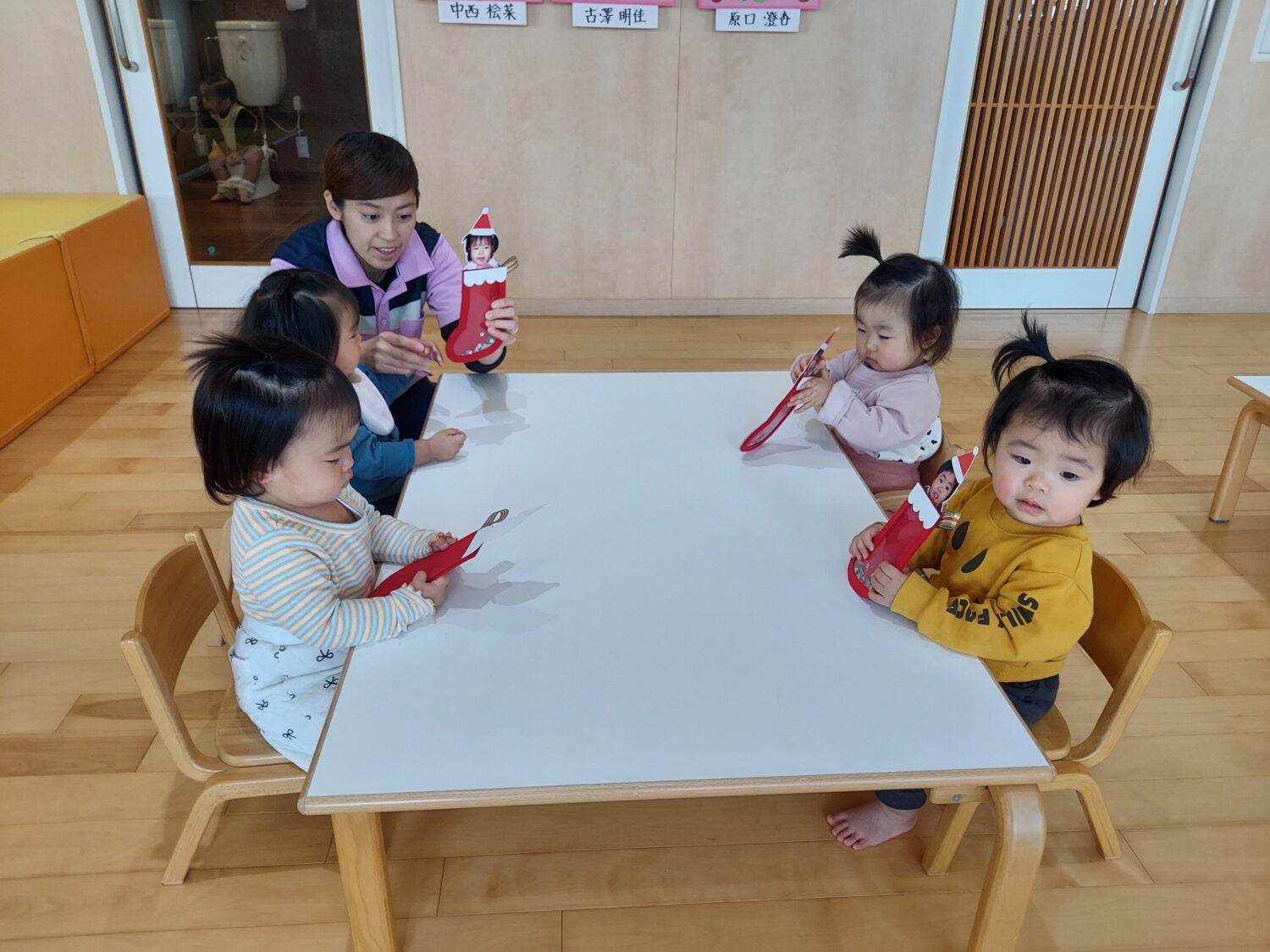あやめ組さんのお部屋にもツリーを出しました♪みんなやる気満々で飾りつけをしてくれました✨サンタさんくる🎅?とわくわくしているみんなです♡