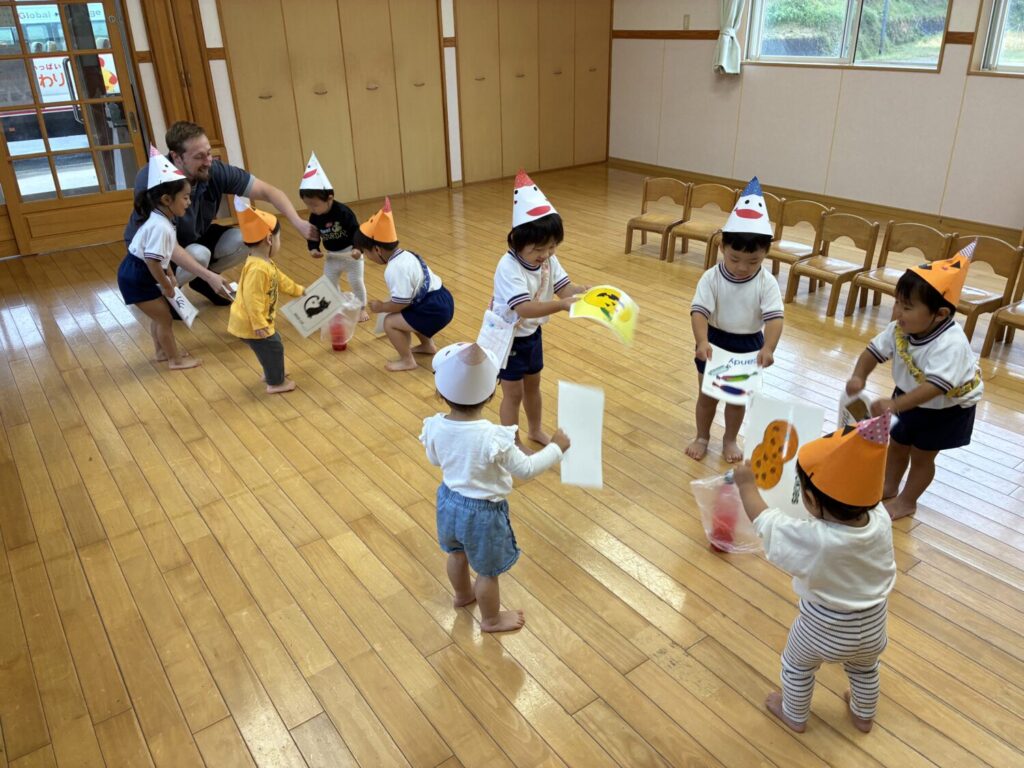 英語のレッスンではゲームを楽しんだ梅組さん😊