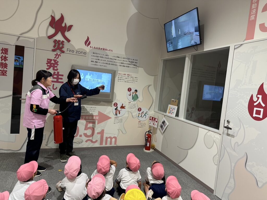 地震や火災、自然災害のビデオを見たり、煙の中を体験した子どもたち!
