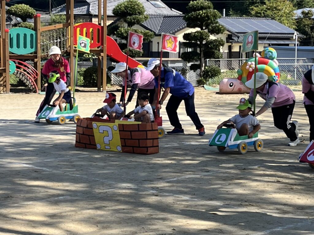 let’s go〜‼️とマリオカートに乗ってお友達と押し合ったり