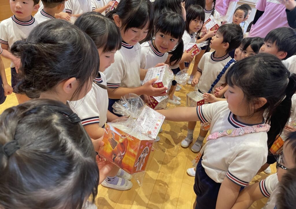 笑顔で桃組さんと藤組さんが作ったプレゼントを渡すことが出来ました😊